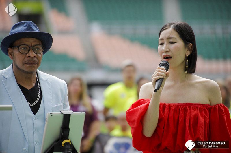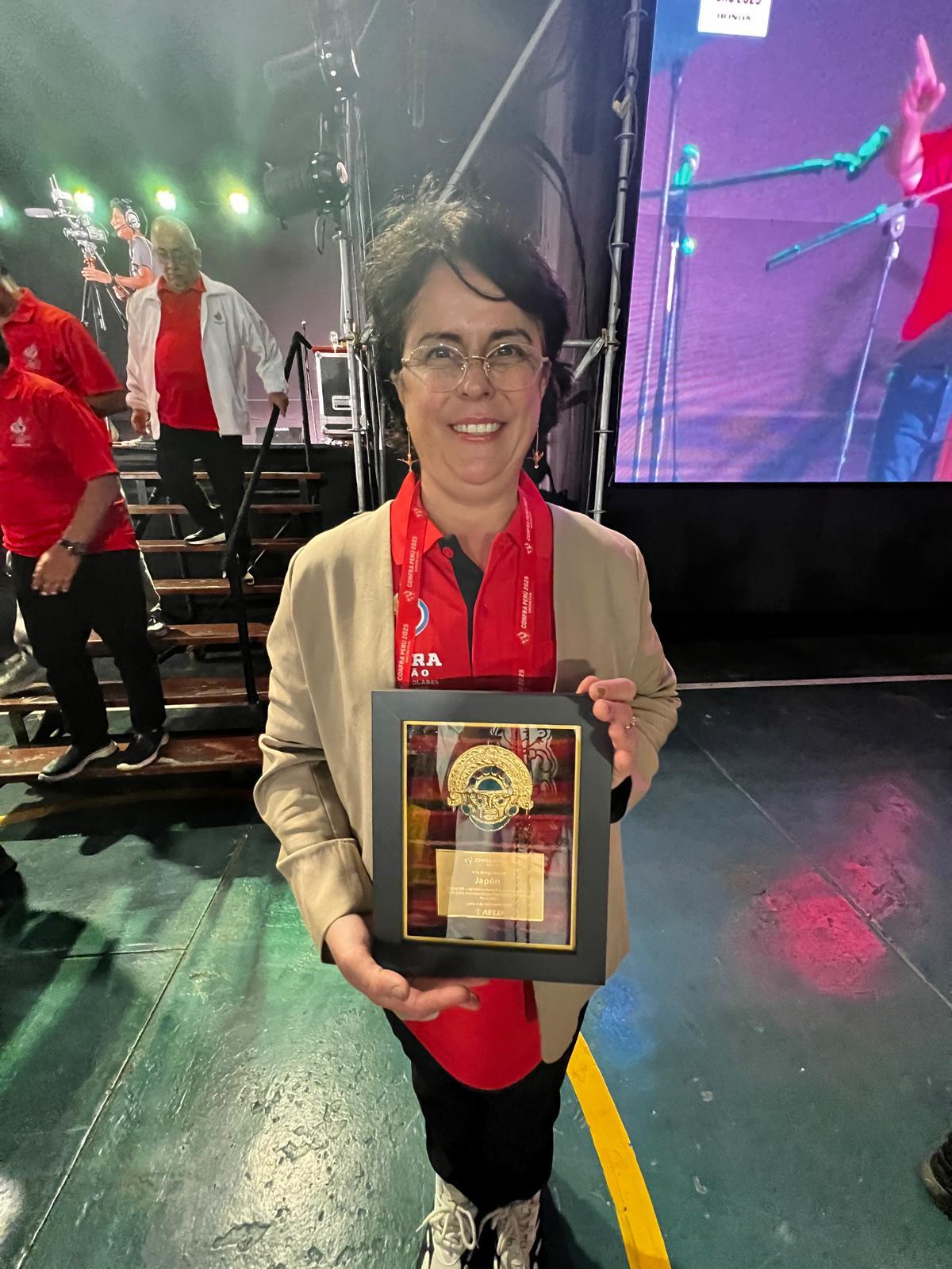 Presdidente do JEBRA e Chefe da delegaç∫ão japonesa no CONFRA, Mácia da Rocha recebe a Placa de agradescimento pela participação